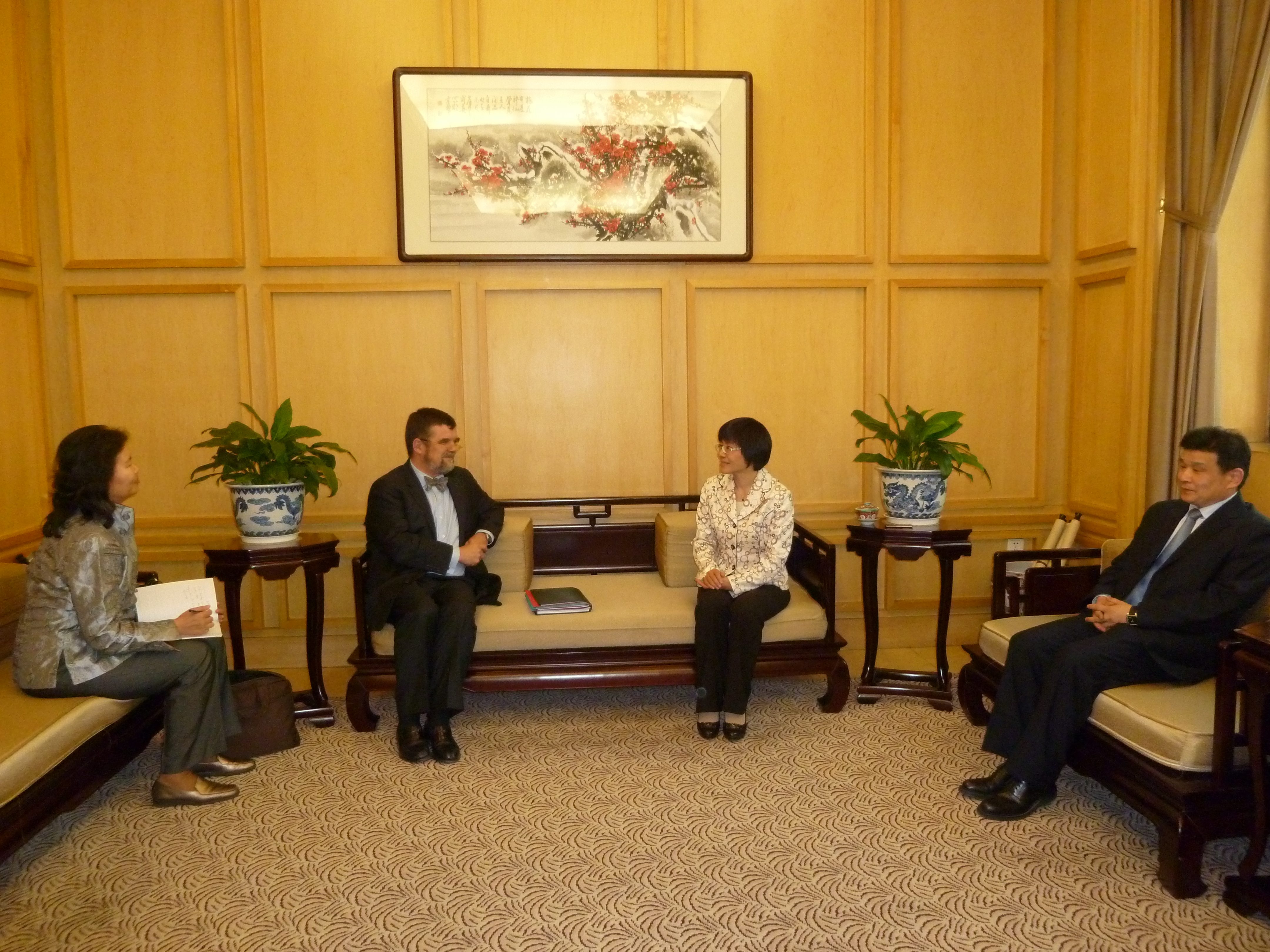 熊九玲会长首先祝贺凯意礼先生当选巴黎工商会会长,对他荣任会长后首次访问北京表示欢迎。熊九玲会长向客人介绍了北京市贸促会、北京国际商会的性质、主要职能及由我会承办的科博会、文博会等主要活动;介绍了目前正在筹办的“2011北京国际友好商会大会”,邀请凯意礼会长担任北京国际商会海外荣誉会长并届时出席大会。熊九玲会长指出,双方商会在经贸合作交流方面交流广泛,希望凯意礼先生发挥在文化、时尚界的影响力,进一步扩展合作领域,特别是会议、展览领域的合作,希望吸引法国设计时尚界有影响力的会展活动来北京举办。