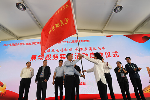 北京市贸促会举行 “党旗在展场飘扬,党徽在岗位闪亮” 展场服务实践活动启动仪式