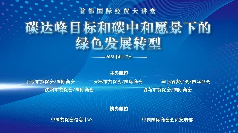 8月17日下午,我会与天津、河北、沈阳、青岛四地贸促会、国际商会共同主办“首都国际经贸大讲堂”系列培训—“碳达峰目标和碳中和愿景下的绿色发展转型”线上培训会,中国国际商会微信视频号同步直播。主协办单位、相关商协会及京内外企业代表近700人参加本次培训。