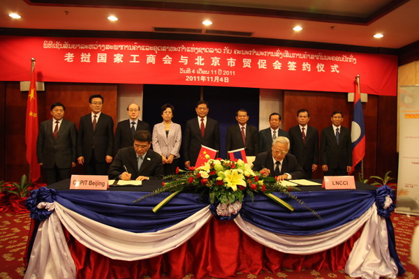 我们紧抓推介贸促会的难得机遇,精心策划、精心组织、关注细节,最终我会在中外党政领导人和中外商界面前完美亮相。中共中央政治局委员、北京市委书记刘淇,中国驻老挝大使布建国,中国驻尼泊尔大使杨厚兰,中共中央对外联络部副部长刘结一,北京市委常委、宣传部部长、北京市副市长鲁炜和老挝人民革命党中央书记处书记、万象市委书记兼市长苏甘,老挝人民革命党中央联络部副部长通西、老挝人民革命党中央办公厅副主任坎苏、老挝万象市副市长宋文迪,尼泊尔商业与供应部部长巴特分别出席并见证了我会与老挝国家工商会和尼泊尔中国工商会友好合作协议的签字仪式。中联部礼宾局丁秀虎参赞,刘淇书记秘书李志军,北京市商务委主任卢彦,北京市教委主任姜沛民,老挝国家工商会会长奇萨拿·冯赛、副会长沙南,尼泊尔政府部门有关负责人等中外方领导也出席了我会组织的签约仪式和相关推介活动。