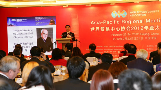 由世界贸易中心协会主办、北京市人民政府支持、北京国际商会协办、中国国际贸易中心和北京世界贸易中心承办的“世界贸易中心协会2012年亚太地区年会”2月23日在北京开幕。