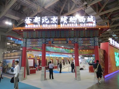 “古都北京·缤纷西城”北京展区面积400平方米,外观以古都北京典型的牌楼和西城标志性建筑金融街的现代建筑为设计灵感,通过实物模型、宣传片、图片、文字等展示“传统与现代结合”的北京西城,在政务、科技、金融、公共服务等方面的资源和成果。展项精选了包括北京鬃人、脸谱绘制、传拓技艺、北京仿古瓷、老舍茶馆茶艺表演、传统药香制作技艺、瑞蚨祥中式服装手工制作技艺非物质文化遗产和老字号,以及活的美术馆、DRC工业设计创意、部分红星奖获奖产品展示、M-pay移动支付等13项文化创意和科技项目。展区中央以西城区著名景点世界文化遗产“万宁桥”为设计元素搭建舞台,现场抖空竹、茶艺和古琴等表演,每天都吸引大量的境内外参观者。
